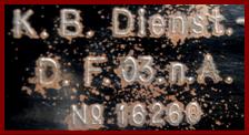 My G. Rodenstock D.F. 03 binoculars are standard WWI German military officers binoculars. “ K. B. Dienst .” is the abbreviation of K ö niglich Bayerisch Dienstglas” or Royal Bavarian {military} binoculars, and “ D.F. 03 ” is “Doppel Fernrohrglas 03”, or Double Telescope {model 1903}, a military model produced starting around 1908 by many German binocular makers before and during WWI, with Rodenstock producing these in 1917-1918 (credit Hans Seeger). As the war progressed and model 08 non prismatic binoculars were issued to non commissioned officers, these were normally issued to infantry officers. |