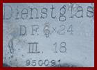 Zeiss manufactured their DF 6x24 military binoculars from 1909 to 1931 (per Hans Seeger “Zeiss Fernglasser”), and my example was marked as to March 1918, with serial number 950091, also confirming 1918 production. My binoculars have the WWI eagle M German Navy property mark. Only some German Navy binoculars are marked Dienstglas. Along with my Australian reissued 1917 Diensglas binoculars in OTHER BINOCULARS #7 these are among the earliest “dienstglas” marked binoculars I have. |