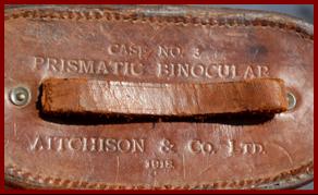 My WWI 1918 dated Aitchison & Co. binoculars and Aitchison case are MOD/ Ministru of Defense broad arrow property marked, and later facing arrow official release from service marked. |
