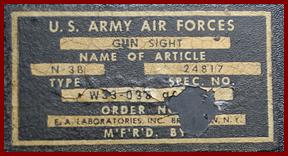 WWII U.S. Army Air Force E.A. Laboratories N-3B fighter aircraft reflector gunsight |