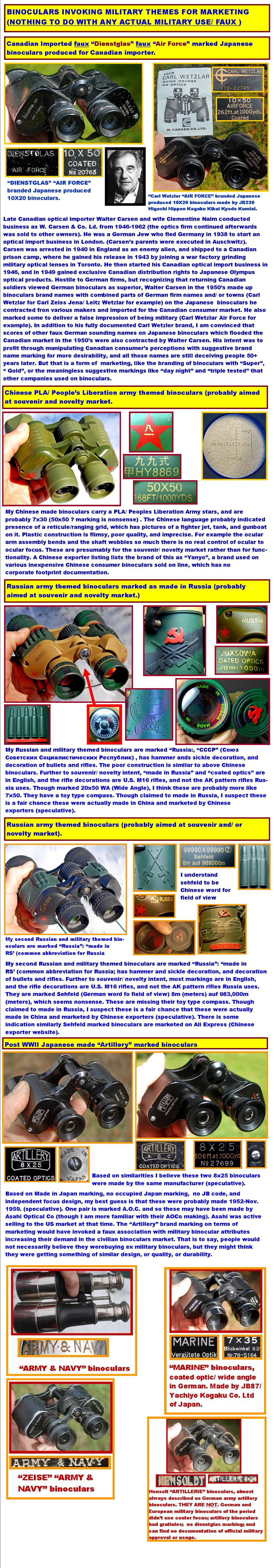 FAUX MILITARY BINOCULARS SECTION AT BOTTOM OF THIS PAGE. |