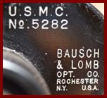 My Bausch & Lomb U.S.M.C./ U.S. Marine Corp. have a couple oddities versus the few other Bausch & Lomb U.S.M.C 6x30 binoculars that I have seen, suggesting either prewar or early WWII (such as 1939) production For example, the objective pivot cover is blank and has no contract data. I have read that B&L binoculars had serial number prefixes from 1940, and mine have no prefix. |